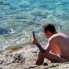 Vlore után felkaptattunk a hágóra, majd végig a nevezetes tengerparti látványúton motoroztunk tovább. Az erdő hűse után nagyon jól esett a napsütés, meg is álltunk egy kicsit feltöltődni D vitaminnal. Innen már végig tökéletes időnk volt, egészen Porto Palermóig mentünk aznap. Krisztiánnak nem sok kedve volt a vadkempinghez, de ezúttal neki kellett engedni, én ragaszkodtam a félszigeti sátrazáshoz. Szó mi szó tényleg lepukkant a hely, de én már megszokásból verek itt tanyát minden alkalommal, ha erre járok. Főztünk egy jót, Krisztián pedig társaságra is lelt, egy olyan osztrák házaspár jött oda a tűzhöz, akik pár km-re laknak tőle. Egy kóbor kutya is mellénk szegődött, jutott neki némi maradék.