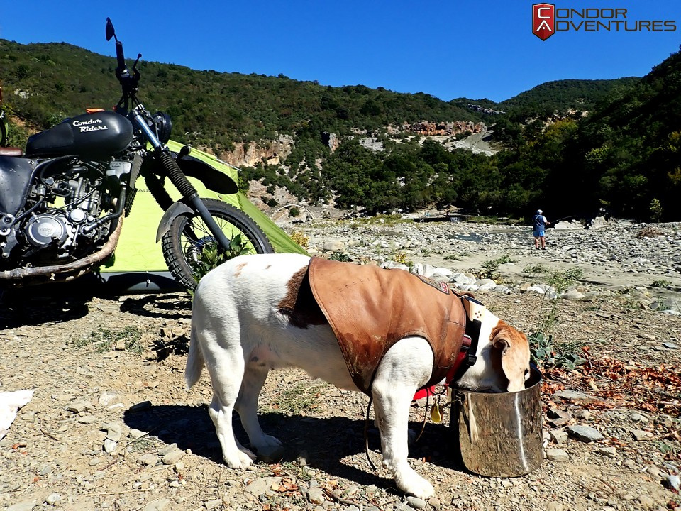Így is volt. Az alatt a pár év alatt igazából azért nem romlott az út állapota, mert nem volt hová. Nyomokban aszfaltot is tartalmazott az úttest, de csak a kátyúk között. Mondjuk én tulajdonképpen ezt a szakaszt élveztem a legjobban, ha nem is off-road, de endúrónak való kihívás. Errefelé szállások sem nagyon vannak, összesen 2 db kempinget találni. A legközelebbi nagyobb város ebben az irányban Korca, onnan már új, azaz kifogástalan minőségű az út. Nagy ütemben folyik az útépítés a másik irányba is (amerről jöttem), de még csak pár km van készen. Az egyik munkaterületen, ahol épp a nagy gépek dolgoztak, az út nyomvonalát sem találtam meg egyből, úgy mutatták meg, merre volt a régi, és lesz majd az új.