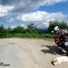 Nem tűnt túl jó ötletnek, hogy én is beszálljak a buliba így péntek este, próbáltam egy félreesőbb helyet keresni, de ami alkalmasnak látszott, az pont a VIP rész volt, ahonnan elhessegettek. Ha csak kicsit megyek arrébb alvóhelyet keresni, akkor az lesz a legrosszabb variáció, mert a zajt még hallom, de a bulitól már túl távol leszek. Leginkább Brigi miatt úgy döntöttem, hogy saját placcunk lesz. Tehát odébbálltunk, bár jól esett volna egy kis társasági élet, ugyanakkor már vágytam a vadkemping élményre is. A gond csak az volt, hogy hasonlóan alkalmas hely nemigen volt a közelben, mint a fesztivál helyszíne, ezért találomra letértem az útról egy falu irányába. Ami, mint kiderült zsákfalu volt egy hegy tetején. A nap lemenőben volt már, ezért az aszfalt vége után továbbrobogtam a sziklás, vízmosta meredek földúton. Pár km után meg is találtam a jó táborhelyet.