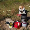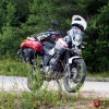 Épp felvertem a sátrat, amikor egy közeledő egyhengeres hangját hallottam meg. Kíváncsian megvártam a motorost az út mellett, mint kiderült egy közeli házikóban lakott. Csak úgy rutinból rákérdeztem, van-e medve a környéken, erre lelkesen magyarázta, hogy van hát, persze, hozzá brummogott és a maci cammogását utánozta. Tehát nem volt félreértés. Szerintem teljesen boldog volt, hogy igennel felelhetett, talán azt hitte ennek a válasznak én is nagyon fogok örülni. Nos ez nem egészen így volt, bár általában a pásztorkutyák nagyobb veszélyt jelentenek a legtöbb vidéken ahol medve is van. Elővigyázatosságból az ételmaradékot egy kis szakadékba öntöttem, ami közel volt, így ha odatéved a medve, biztonsággal meg is figyelhettem volna. Lefekvés előtt körbejelöltem a táborhelyet (körbepisáltam), nagyjából 30 m átmérőjű körben, az élelmiszer készletemet pedig szintén a szakadékban rejtettem el, így már nyugodtan aludtam a hideg vacsora után. Reggel komótosan nekifogtam a főzésnek, mire megszáradt a sátor és összepakoltam, dél felé járt az idő. Nagyon jó helyet sikerült találni, csak a napnyugta előtt és napkelte után rajzó rengeteg légy volt idegesítő, különösen Brigi számára.