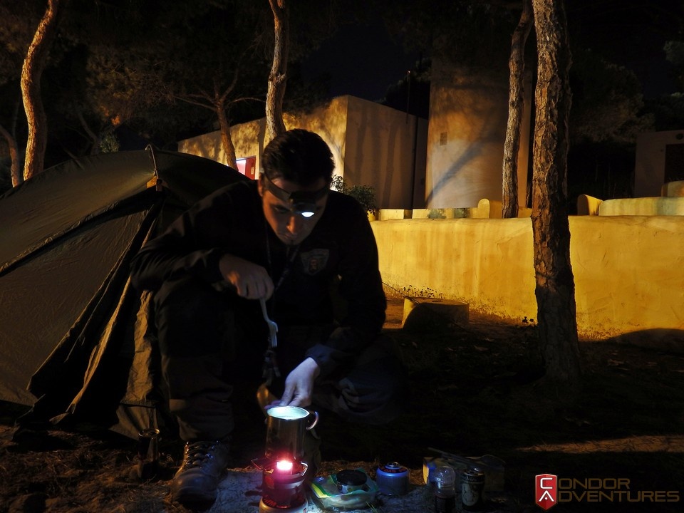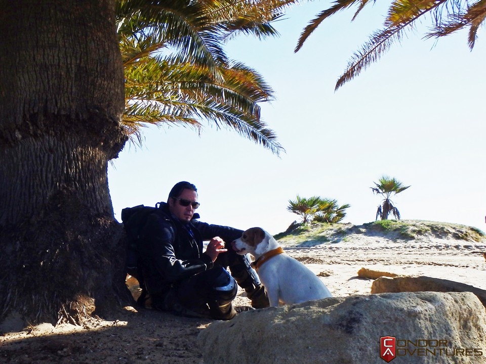 Mint mindenhol, itt is kevesen voltak, pár lakóautó és passz. Válogathattam a sátorhelyek között, és az egyik vizesblokk mellett találtam egy jó helyet, narancsfa alatt. A víz közelsége mindig fontos (főleg a „vadonban”), kempingekben pedig az óvatosság miatt különösképpen. Ha egyedül utazik az ember fia, nem okos dolog hosszú időre őrizetlenül hagyni a sátrat. Az erdőben csak véletlen látogatóra számíthatunk leginkább, ilyen civilizált helyeken viszont talán épp vár ránk valami specialista. Megjegyzem, sehol sem merült fel komoly aggályom a biztonsággal kapcsolatban, lazítottam is a saját szabályaimon, de az út folytatásához feltétlenül szükséges dolgokat mindig magamnál tartom. (Iratok, pénz, motor kulcs, telefon, GPS, töltők.) Ez így sok cuccnak tűnhet, ezért jó hűvösebb időben túrázni, mert kell a sok zsebes hosszú nadrág és egy dzseki, amiben mindezek el is férnek a wc-ben vagy a zuhanyzóban is. Sok egyéb előnye is van a télen való motorozásnak, erre a 2012-es téli skóciai motoros kirándulásomon ki is tértem bővebben.