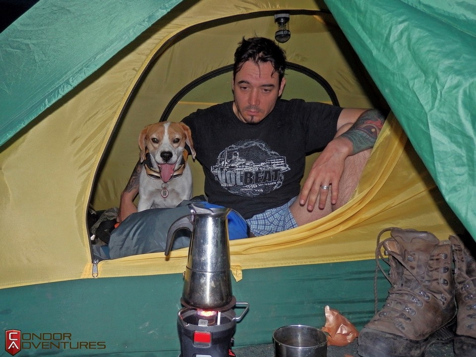 A kemping tele volt gyerekekkel is, talán osztálykiránduláson lehettek, nagy volt a nyüzsgés. Este frissen sült kolbászt ettem, amit még Nizzában vettem, finom volt. De a gázfőzőmet ismét elátkoztam, immáron sokadjára. Amit használok, a Primus Eta Solo típusa, szerintem a világ legdrágább outdoor vízforralója, semmiképp nem ajánlom. Kávéfőzésen (az is bajos) és vízforraláson kívül (tea, zacskós étel) másra nem alkalmas. Főzni/sütni nem lehet rajta, mert azonnal leég az étel, annyira hatékonyan adja le a hőt. A mérnök, aki tervezte (koppintotta) nem tudom mennyit gondolkozott rajta, de kár volt. Úgy használhatatlan, ahogy van. Legalábbis ha az általános elvárásokat támasztjuk vele szemben. Magashegyi körülmények között még jó is lehetne, ha kicsit okosabban másoltak volna. 4000 m alatti túrákhoz ne vegyél ilyet!